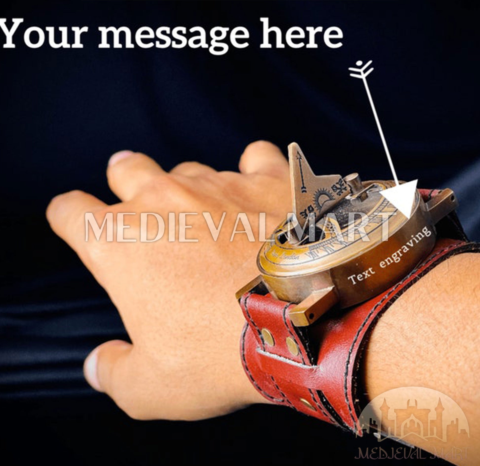 Tracez les étoiles et le temps avec cette remarquable montre à main boussole solaire nautique, inspirée des navigateurs célestes des mers médiévales. Fabriquée à la main en laiton pur avec une lumineuse finition dorée, cette pièce de 50 mm fusionne une boussole entièrement fonctionnelle avec un cadran solaire finement conçu et une montre classique, dont les gravures détaillées capturent l’essence de l’exploration. Personnalisée par une gravure sur mesure, elle devient un souvenir unique, symbole de direction, d’ambition et de force durable. Fixée par un bracelet en cuir cousu main pour un confort optimal et un charme robuste, cette pièce sophistiquée est conçue pour durer. Parfaite pour les anniversaires, les célébrations ou les moments d’admiration, c’est un cadeau inoubliable pour lui, honorant son rôle de force directrice dans les grandes traversées de la vie.