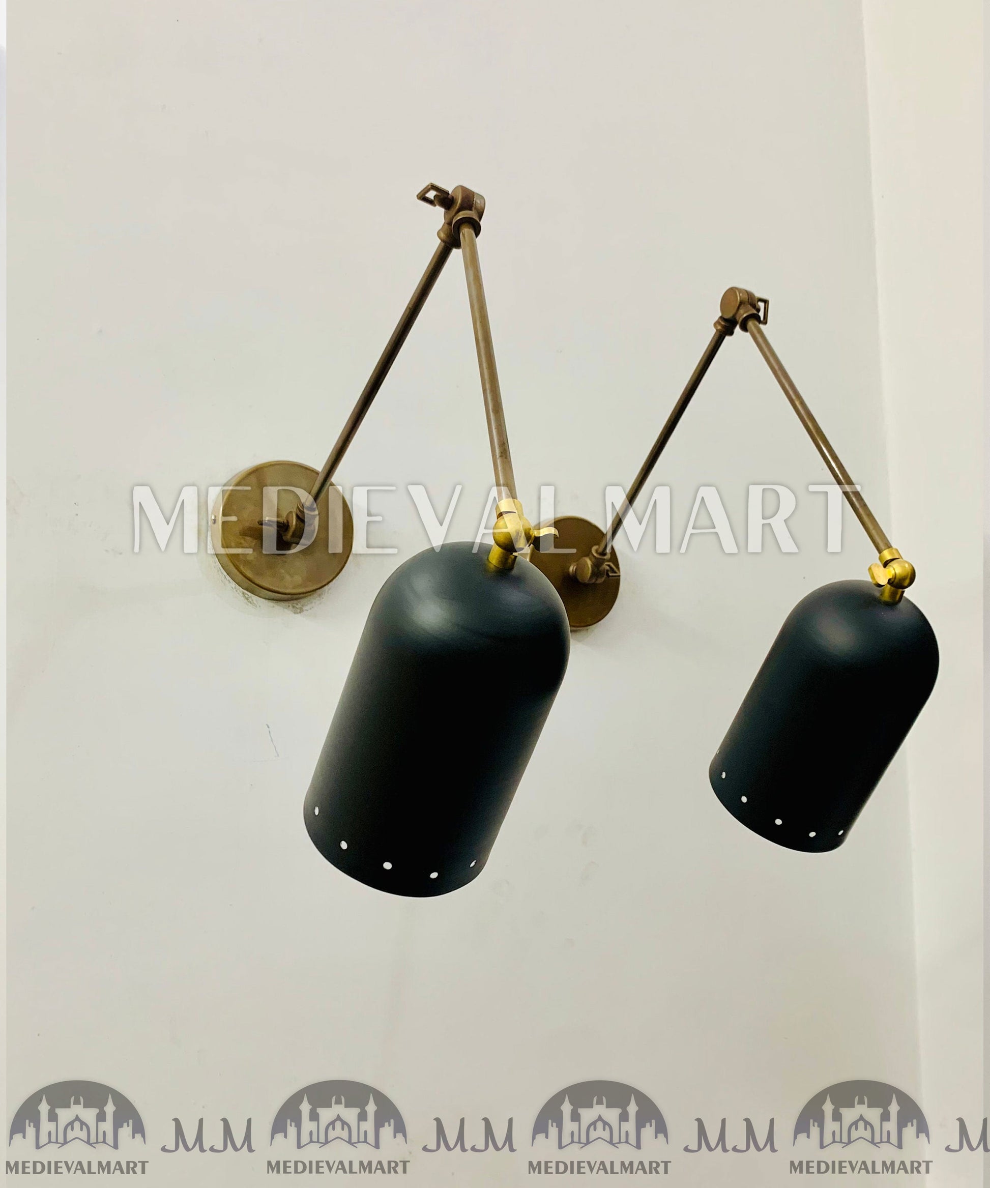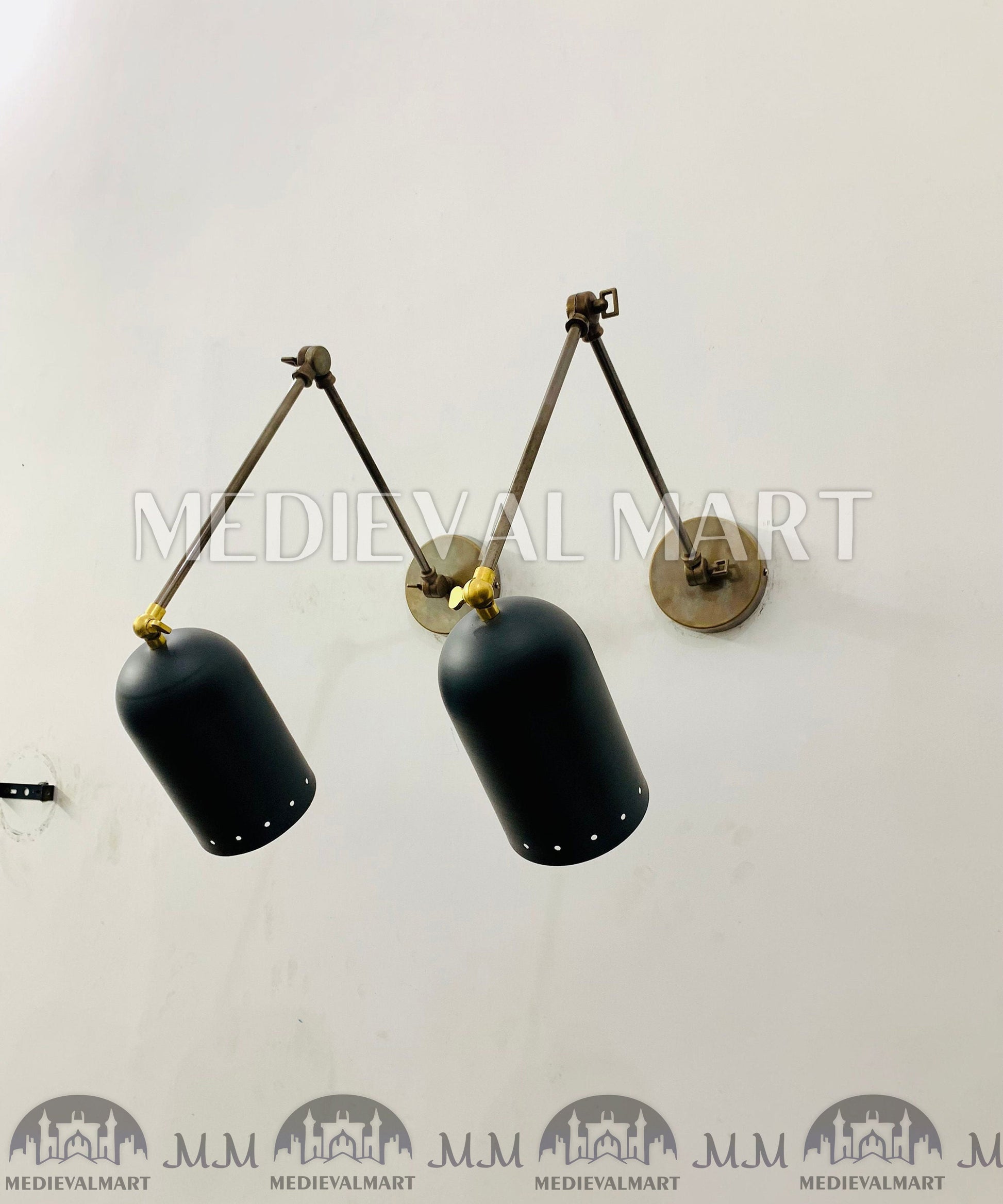 MEDIEVALMART FR Applique Murale À Double Cône En Laiton Marron, Lampe De Coiffeuse Fabriquée À La Main