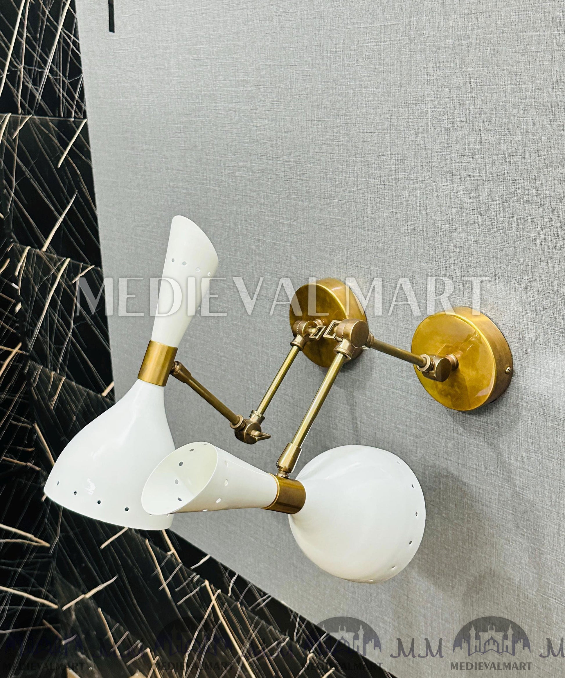 MEDIEVALMART FR Applique Murale À Double Cône En Laiton Marron, Lampe De Coiffeuse Fabriquée À La Main