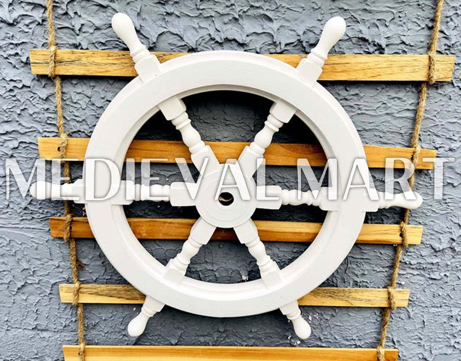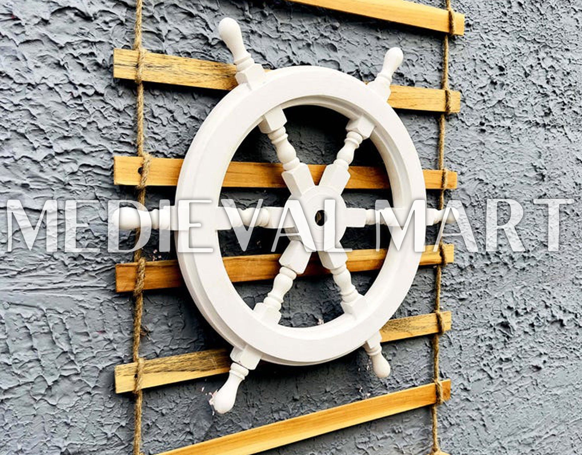 Apportez une élégance maritime intemporelle à votre intérieur avec la Roue de Navire Nautique MEDIEVALMART à finition blanche. Fabriquée à partir de bois de haute qualité, cette roue de navire artisanale présente une finition blanche lisse qui évoque le charme classique du monde marin.
