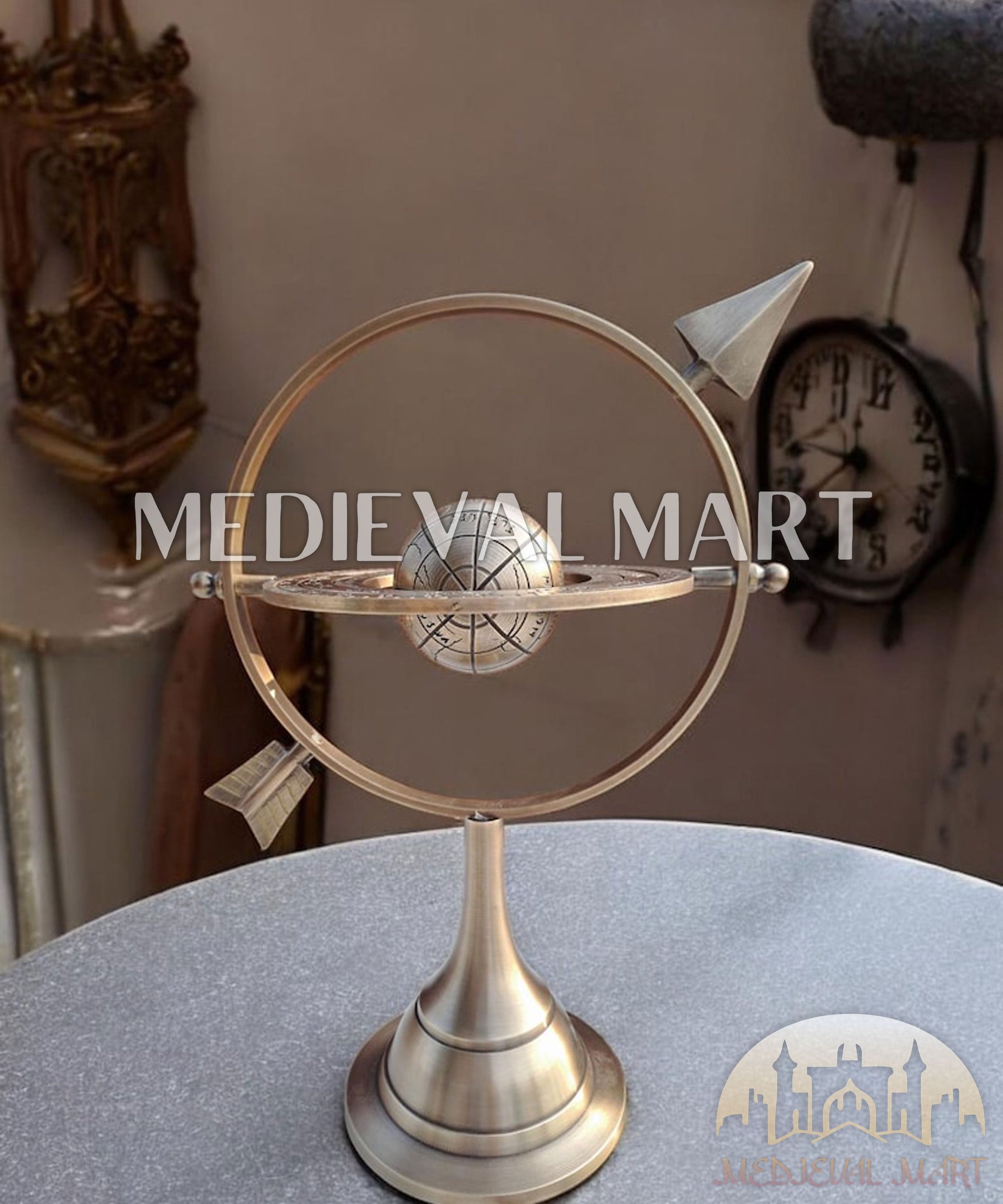 Cette sphère armillaire en laiton antique est une œuvre intemporelle mêlant astronomie, astrologie et élégance vintage. Fabriquée en laiton de qualité supérieure avec une finition antique, elle met en valeur des anneaux planétaires détaillés et des symboles célestes, apportant une touche raffinée à tout intérieur, bureau ou espace d’étude. C’est également un cadeau idéal pour les passionnés d’histoire, de science et de décoration classique.