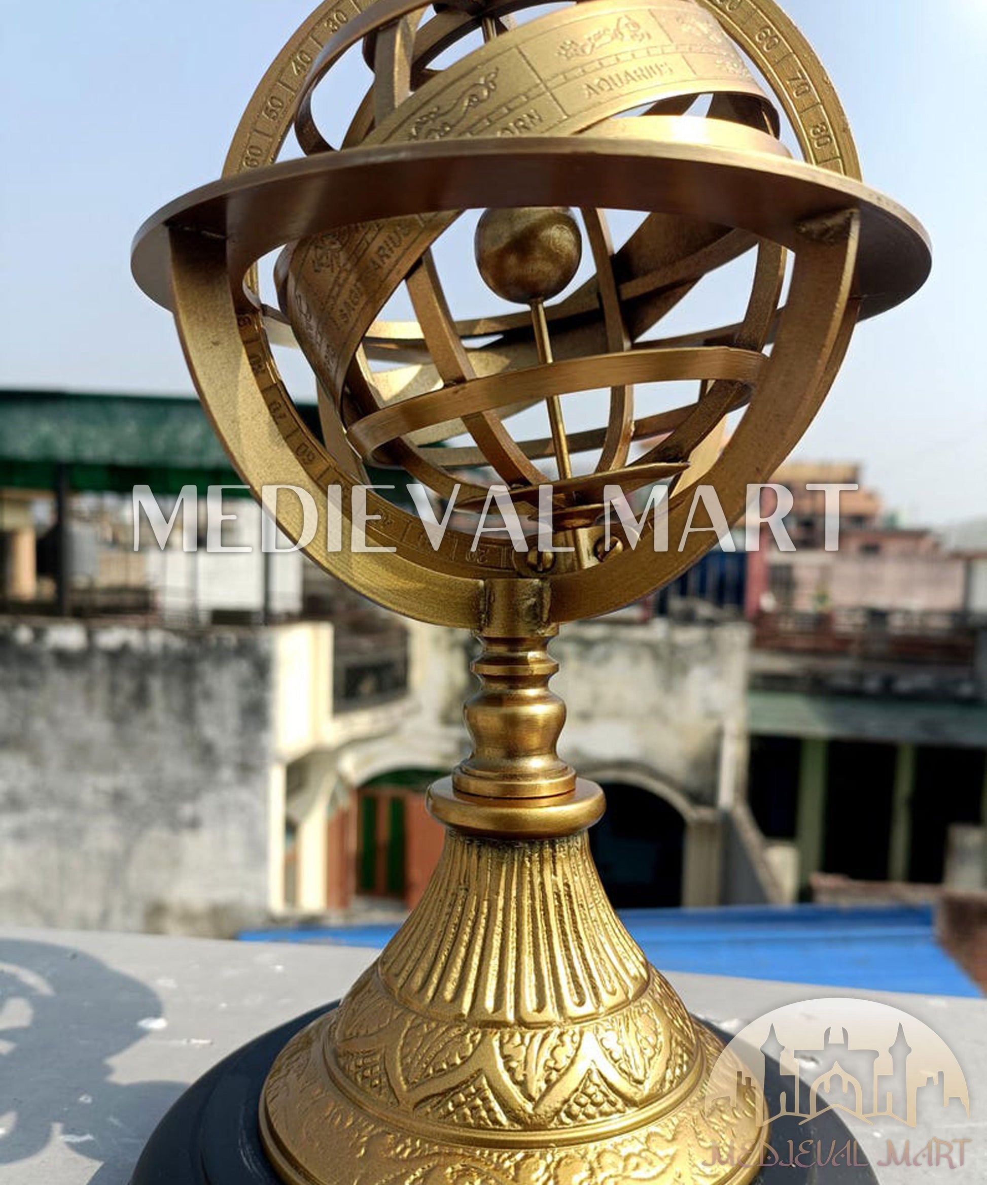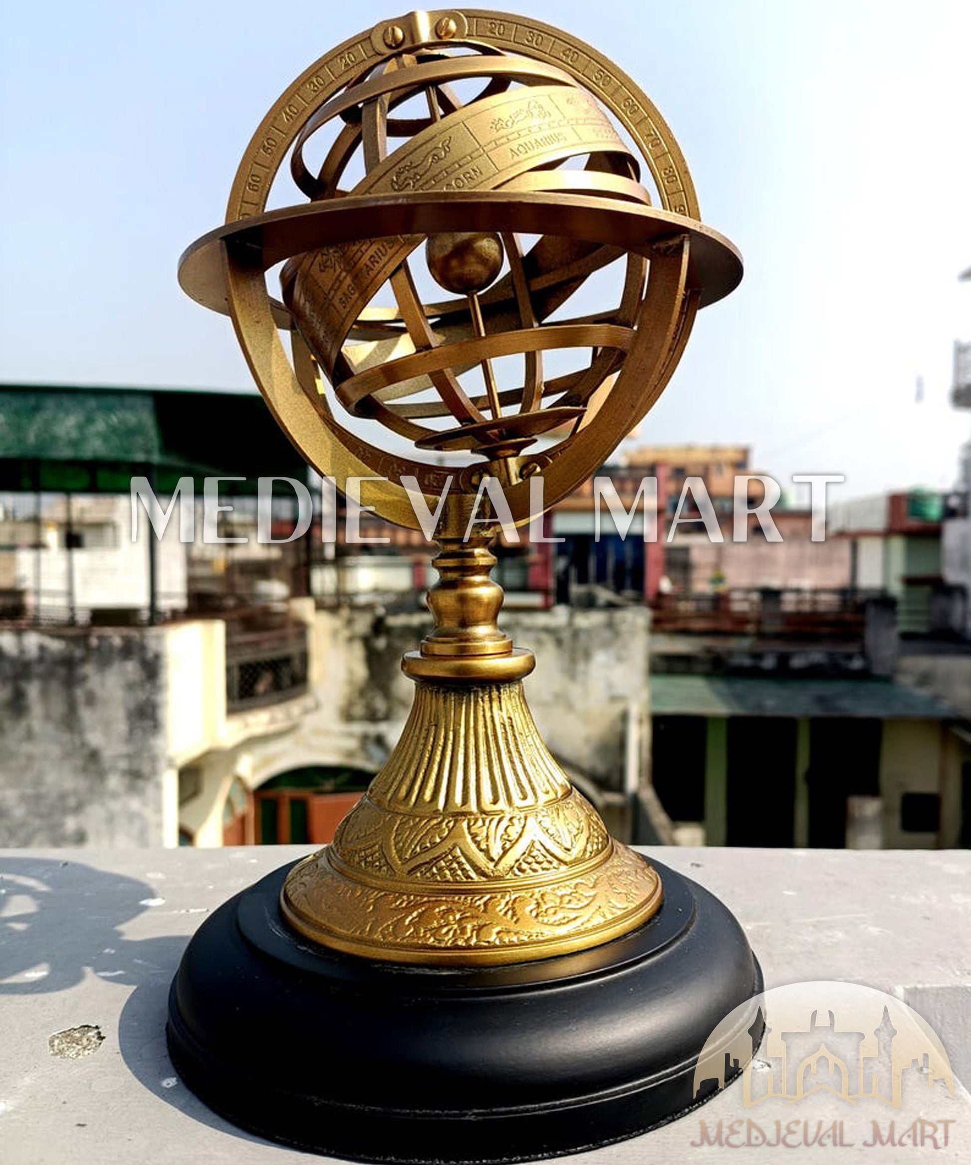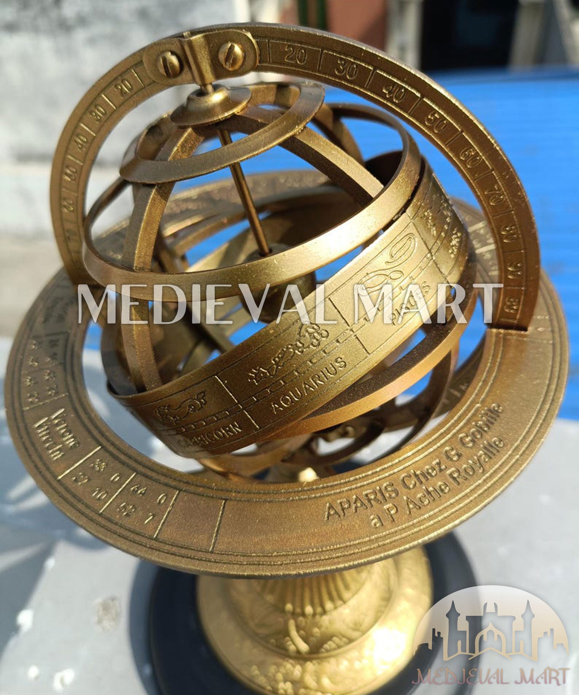 Apportez les mystères du cosmos dans votre intérieur avec cette sphère armillaire en laiton finement travaillée. Inspirée des anciens instruments astronomiques, cette pièce décorative présente de délicates gravures du zodiaque et des anneaux entrelacés symbolisant l’équateur céleste, les tropiques et la trajectoire du soleil.