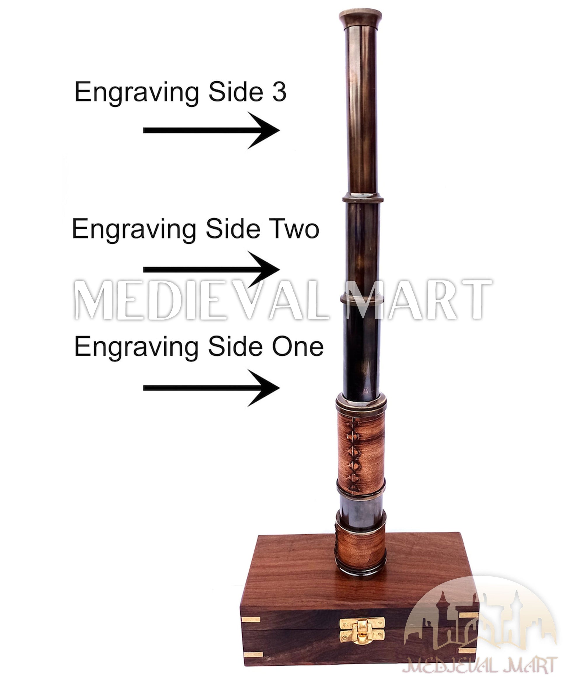 Célébrez les moments importants de la vie avec le télescope fonctionnel personnalisé MEDIEVALMART, un parfait mélange d’artisanat, de fonctionnalité et d’émotion. Fabriqué à la main en laiton massif avec une finition antique, ce télescope est à la fois un instrument optique entièrement fonctionnel et un souvenir mémorable lorsqu’il est personnalisé avec un message spécial.