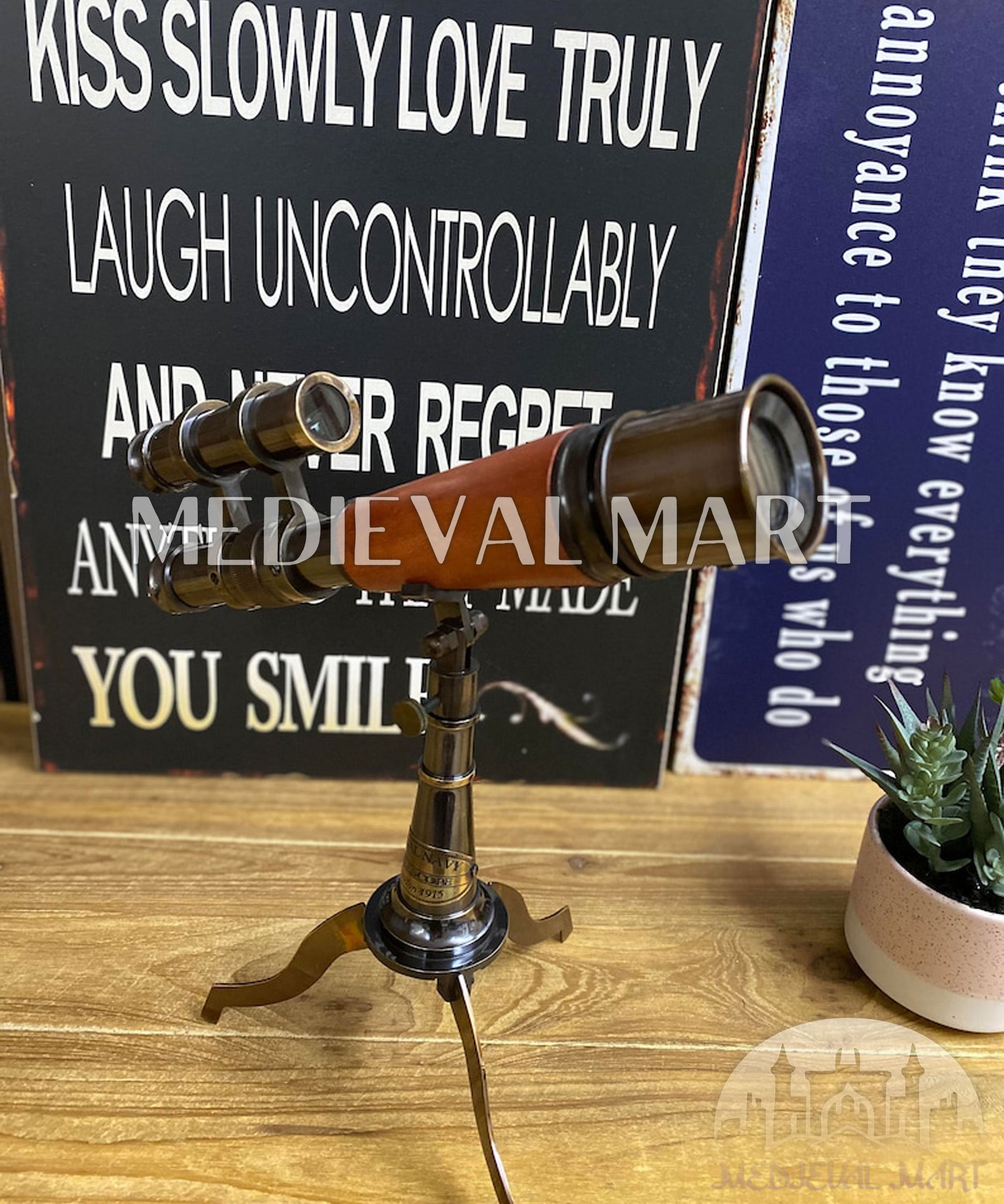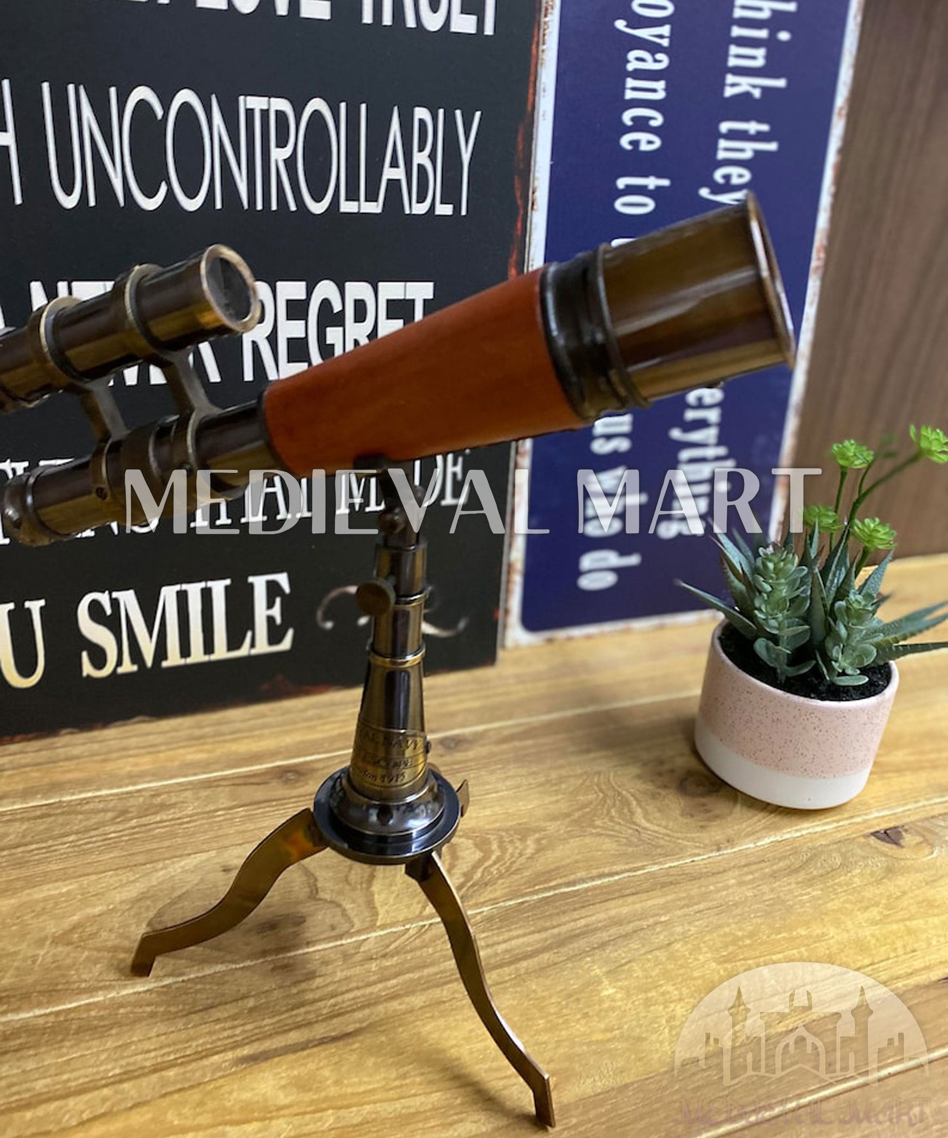 Découvrez le monde avec notre télescope en laiton de 10 pouces, accompagné d’un support robuste en laiton. Cette longue-vue nautique de style pirate est à la fois un objet décoratif raffiné et un instrument fonctionnel, doté d’optiques de haute qualité pour une vision claire.
