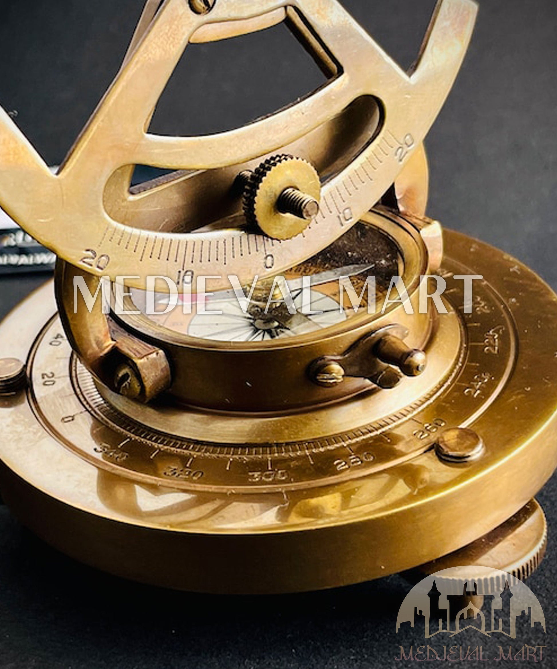 Conçue dans l’Antiquité pour offrir une plus grande précision et une portée de visée étendue, cette alidade en laiton de style antique est équipée d’une boussole magnétique pour les relevés et d’un niveau à bulle intégré au télescope pour une visée précise. Montée sur une base en laiton de 4,5 pouces avec trois vis de réglage, elle permet un nivellement précis et stable.